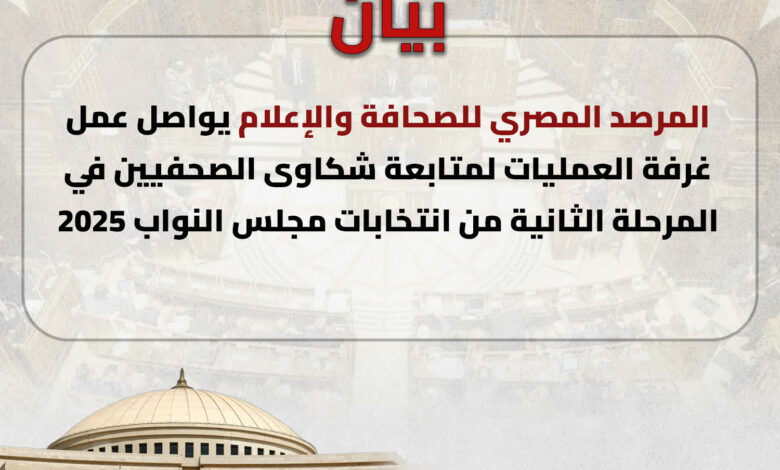 المرصد المصري للصحافة والإعلام يواصل عمل غرفة العمليات لمتابعة شكاوى الصحفيين في المرحلة الثانية من انتخابات مجلس النواب 2025