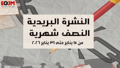 نُقدم هذه النشرة البريدية النصف شهرية التي تتناول أهم إصدارات مؤسسة المرصد المصري للصحافة والإعلام، وندعوكم إلى الاطلاع على أحدث تقاريرنا ودراستنا التي تسلط الضوء على القضايا المحورية والتحديات الراهنة التي تواجه الصحافة المصرية، تجدون في هذه النشرة تقارير معمقة وتحليلات موضوعية تسعى لتعزيز بيئة إعلامية حرة ومستقلة، عطفًا على تحديثات أسبوعية لمشروع الأرشيف الضخم لأبرز الصحفيين/ات والمؤسسات الصحفية المصرية والتعريف بهم/ن .