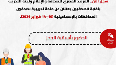 إيمانًا من “المرصد المصري للصحافة والإعلام” بأهمية تطوير وتنمية قدرات الصحفيين/ات، وتأهيلهم/ن لمواكبة التحولات المتسارعة في المجال الصحفي والإعلامي، أعلنت…