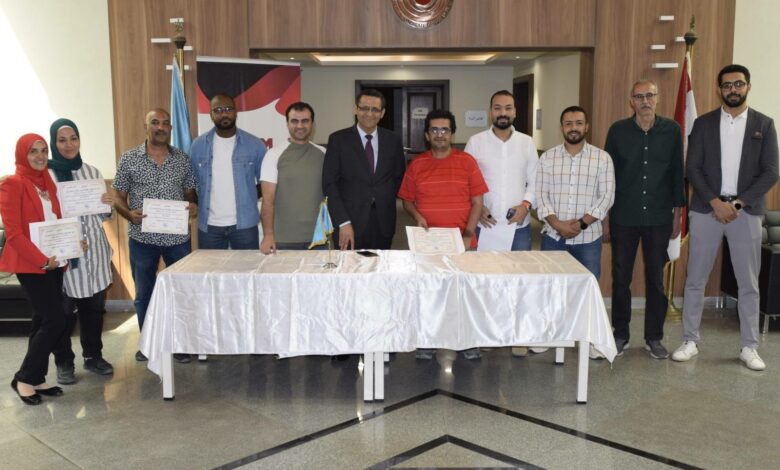 جانب من توزيع شهادات حضور برنامجنا التدريبي بحضور الكاتب الصحفي خالد البلشي نقيب الصحفيين، و عضو مجلس أمناء مؤسسة المرصد المصري للصحافة والإعلام، الصحفي خالد حسين