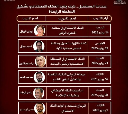 في عالم تتسارع فيه الابتكارات الرقمية وتتزايد فيه التحديات الإعلامية، يقدم المرصد المصري للصحافة والإعلام بالتعاون مع نقابة الصحفيين برنامجًا تدريبيًا رائدًا، يفتح أمام الصحفيين آفاق التعامل الذكي مع أدوات الذكاء الاصطناعي، ويعزز قدرتهم على حماية الحقيقة وسط الضجيج الرقمي.
