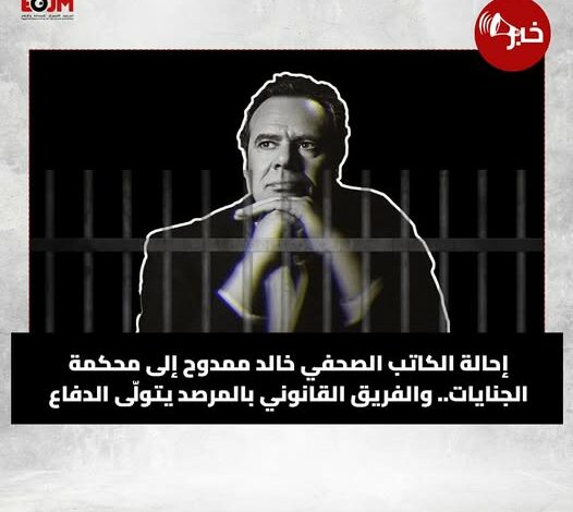 إحالة الكاتب الصحفي خالد ممدوح إلى محكمة الجنايات.. والفريق القانوني بالمرصد يتولّى الدفاع
