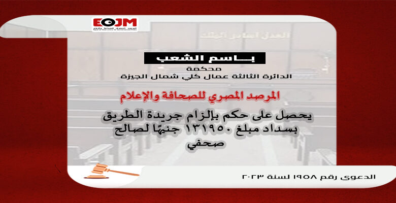 المرصد المصري للصحافة والإعلام يحصل على حكم بإلزام جريدة الطريق بسداد مبلغ 131950 جنيها لصالح صحفي