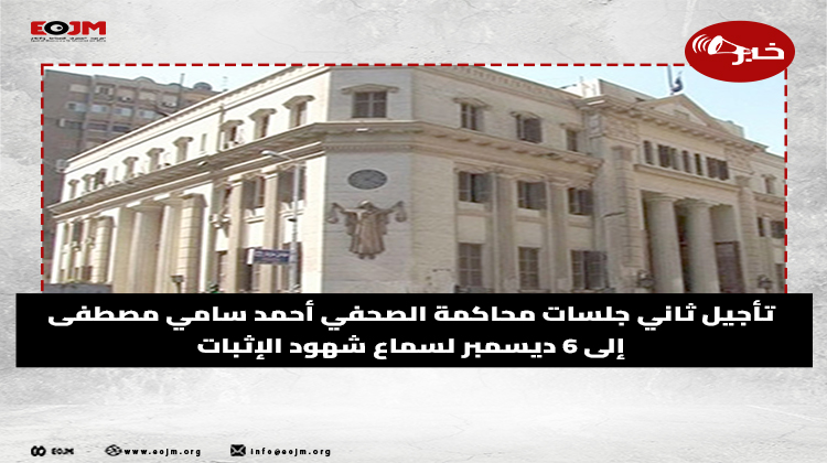 تأجيل ثاني جلسات محاكمة الصحفي أحمد سامي مصطفى إلى 6 ديسمبر لسماع شهود الإثبات
