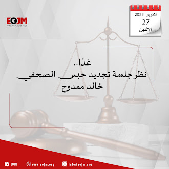تنظر غدًا الاثنين الموافق27 أكتوبر 2025 محكمة جنايات القاهرة بمركز إصلاح وتأهيل مدينة بدر جلسة مد أمر الحبس الاحتياطي للصحفي خالد ممدوح في القضية رقم 1282 لسنة 2024 أمن دولة عليا والتي يواجه فيها اتهامات الانضمام إلى جماعة ارهابية ونشر أخبار وبيانات كاذبة.