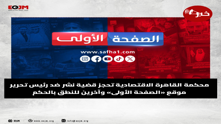 حجزت دائرة الجنح بمحكمة القاهرة الاقتصادية، أمس السبت الموافق 10 يناير 2026، القضية رقم 189 لسنة 2025 جنح اقتصادية الدقي، والمقيدة برقم 3181 لسنة 2025 جنح اقتصادية، والمتهم فيها كل من محمود الضبع رئيس تحرير موقع “الصفحة الأولى”، والصحفيين محمود صبرة وكمال الناحل، إلى جلسة 31 يناير المقبل؛ للنطق بالحكم.