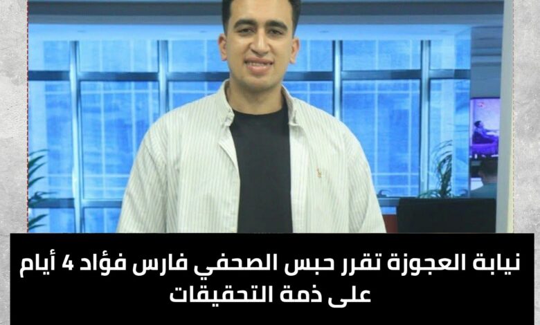 نيابة شمال الجيزة تأمر بحبس الصحفي فارس فؤاد 4 أيام