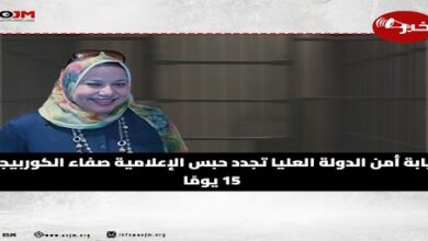 جددت منذ قليل نيابة أمن الدولة العليا في القاهرة الجديدة حبس الإعلامية صفاء الكوربيجي لمدة 15 يومًا على ذمة التحقيقات…
