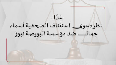 غدًا نظر دعوى استئناف الصحفية أسماء جمال ضد مؤسسة البورصة نيوز