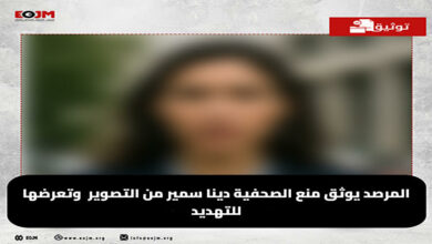 نوفمبر 25, 2025المرصد يوثق منع الصحفية دينا سمير من التصوير وتعرضها للتهديد